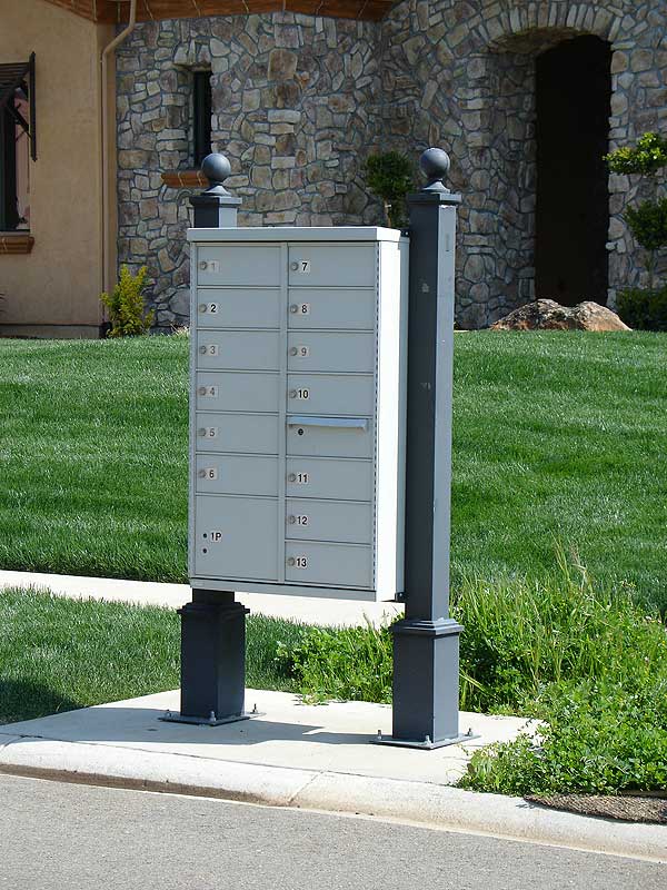 Give your development curb appeal with these decorative CBU mailbox and post systems. CBUs can now match the style of residential mailboxes, street signs and light poles in a master planned community. Decorative and durable, made of rust and rot proof cast aluminum and stainless steel. Posts available in black, white, gray or green. CBUs come in sandstone, black, bronze, white, or green and are USPS approved (local postmaster approval of posts is required). Posts with finials only, add to price of CBU.