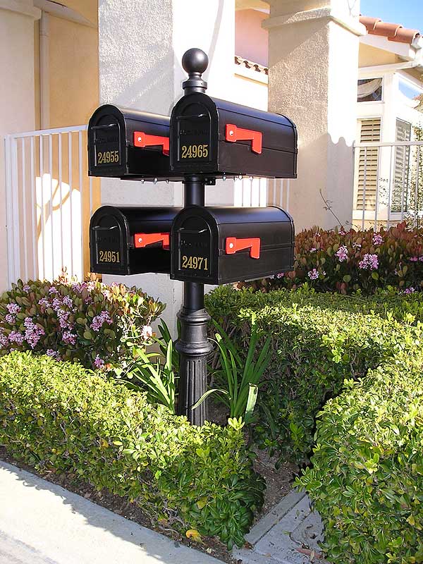 • For a custom look, while ensuring uniformity, consider buying a decorative mailbox system: post, mailbox, address plaque and newspaper holder.